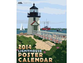 Maine graphic artist Alan Claude employs strong colors and the dramatic effect of light and shadow to honor New England's lighthouses. This auction lot consists of one 2014 poster calendar, signed by the artist, and one desk calendar.