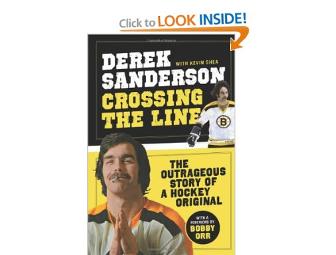 Crossing the Line: The Outrageous Story of a Hockey Original, written and signed by Derek Sanderson.