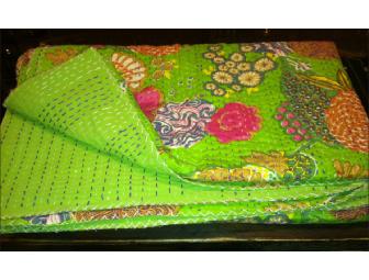 Vintage Kantha Quilt (Queen size) hand stitched, tropical flower pattern(made in India)