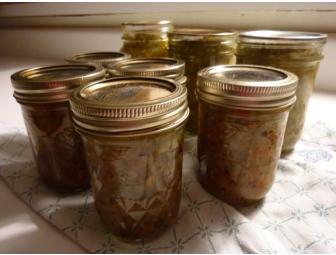 If you like some zip in your life, you will love Chris Kochem's relish! Made with green tomatoes, peppers, and onions, this relish is sweet, yet tangy (not hot) and is delicious on burgers and hot dogs. Try it with tuna, egg salad, baked beans or it's equally excellent as a spread on your favorite sandwich or veggie patty. Winner may request a substitution of one jar of Chris's delicious jam in place of one of the three jars of relish.