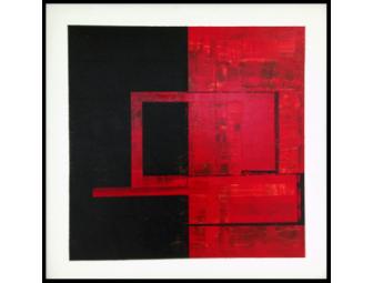 Tectonic Red 2010, 25 x 25 Mixed Media on Incised Masonite Panel/ Framed Black