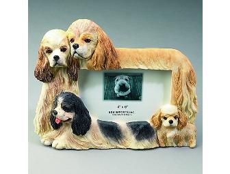 This adorable Cocker Spaniel frame is perfect for any lover of the breed! It features 4 sculptured Cocker Spaniels around the frame. Proudly display a picture of your favorite pet in this unique photo frame.