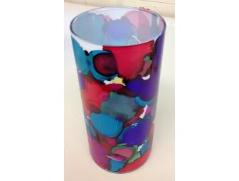 This battery-powered handmade lamp was created by Crew 15, Ann Boger's 5th grade class. This cylindrical lamp is approximately 8" high, and will make a colorful and unique addition to any home.