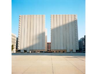 Started in 2007, Lavine's photographs of contemporary fortresses, re-imagined for modern day, are shown and acquired through an online gallery collection. "Fortress #2" is a photograph of the John F. Kennedy building in Dallas, TX.