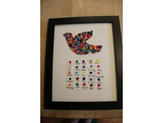 First Graders in Ms. Gillies class made a colorful dove using fingerprints and framed the picture. This picture also includes a key to the individual students and their colors.