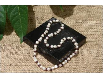 This elegant pearl and stone necklace measures approximately 16 inches.