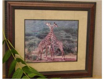 This beautifully framed photograph of two giraffes in the wild is truly picturesque. It measures 22 1/2 x 20 inches.