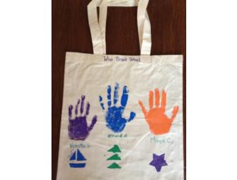 Fourth Graders in Ms. Elgert's class have taken canvas bags and stamped them with cool designs, including hand prints!