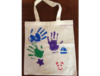 Fourth Graders in Ms. Elgert's class have taken canvas bags and stamped them with cool designs, including hand prints!