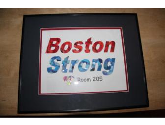 Ms. Pandolfo's third grade class was very inspired by the "Boston Strong" theme following the aftermath of Marathon Monday. They really rose to the occasion on Boston "Spirit Day" at Winn Brook and dressed up in Red Sox, Celtics, and other Boston themed gear. The class thought it would be great to continue to show our support. The design is made out of small pieces of magazine clippings that the students cut themselves. Half of the class cut out red pieces, while the other half cut out blue pieces. Three students searched for multi-colored clippings for the heart. We decided on blue and red for the sign in honor of both the Boston Red Sox and our nation's colors.