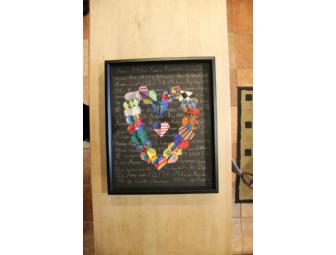 Third Graders in Ms. Calhoun's class made this framed artwork by decorating hearts and affixing them on a background with the word love in many different languages.