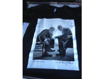 One of a kind black, Amercian Apparel T-shirt with the famous image of Jay Z and Kanye West as JFK and Bobby Kennedy in the White House.