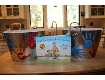 Second graders in Ms. Morrison's decorated two buckets with the children's handprints. It is accompanied by the book, "Have You Filled Your Bucket Today?" by Carol McCloud.