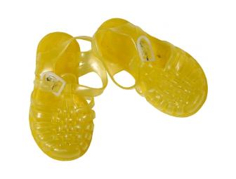 A pair of Little Girls' Arsene et les Pipelettes yellow jelly Shoes.