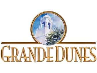 An 18-hole round of golf for four with carts at Grande Dunes Golf Club in Myrtle Beach, SC. Golf appropriate attire is required. Certificate expires May 31, 2014. Not valid in March, April, or October. Please call (843)235-4653 to schedule your tee time, which can be made 48 hours in advance. Please mention this certificate when establishing your tee times. Visit www.grandedunes.com/golf.
