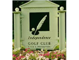 An 18-hole round of golf for four with carts at Independence Golf Club in Midlothian, VA. Collared shirts required, no denim allowed. Valid Monday-Sunday excluding holidays. Certificate expires April 30, 2014. Visit www.independencegolfclub.com.
