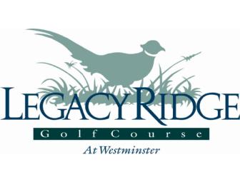 An 18-hole round of golf for four with carts at Legacy Ridge Golf Course in Westminster, CO. Closed Thanksgiving, Christmas and New Year's Day. Proper golf attire is required. Certificate expires Dec. 31, 2014. Visit www.golfwestminster.com.