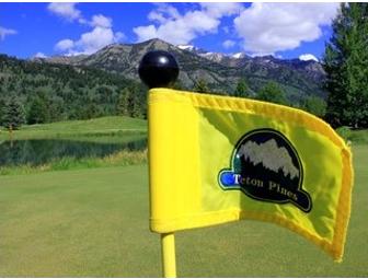 An 18-hole round of golf for four with carts at Teton Pines Resort & Country Club in Wilson, WY. Shirts must have a collar, Bermuda length shorts required, slacks must have a neat and untattered appearance. Certificate expires one year from the date of purchase. Visit www.tetonpines.com.