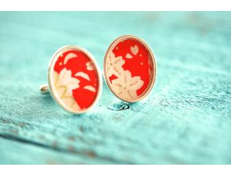 Add a bit of whimsy to your wardrobe with these fun Japanese washi paper cufflinks! Washi paper is sealed in liquid glass and mounted on sterling silver cufflinks. They add a pop of color to any French cuff button down shirt. Perfect for any man!!