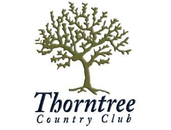 An 18-hole round of golf for four including carts. Valid Tuesday-Friday after 12 pm. Tee times are to be made 3 days in advance. When making a tee time, please inform the pro shop staff that you will be using a gift certificate, and be prepared to provide the names of your playing partners. Dress code is strictly enforced: collared shirt, no jeans, and no steel spikes. Fivesomes and sixsomes are prohibited. Certificate expires Dec. 31, 2013. Visit www.thorntreecc.com.