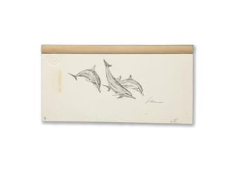 A lovely pencil illustration of dolphins being dolphin-y, from Straight on Til Morning: Poems of the Imaginary World, a collection including nearly 100 modern American and English poets. It's 8.5" x 4" and would be treasured by anyone who's swum with dolphins or loves our clacking mammalian friends in the sea. Ted Lewin is the illustrator of over 100 children's books, a Caldecott Honor winner, a world traveler, a former pro wrestler, the husband of Betsy Lewin, the subject of many retrospectives and an adventurous soul.