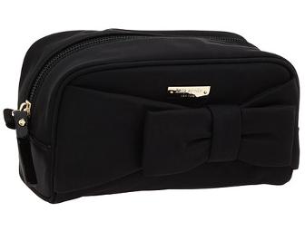 Kate Spade Black Small Nylon Violet with Bow. Mini clutch perfect for a night out when all you need are a few essentials - keys, cell phone, some money & that perfect lipstick. Red lining with small zip pocket. 4"h x 6 1/2"w x 3"w