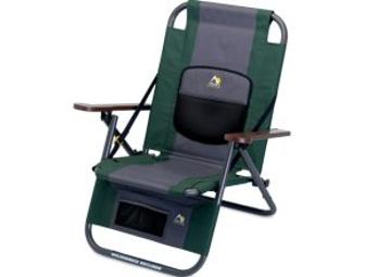 Patented Hillside Adjustment system adjusts to slopes Patented BackComfort Technology holds backrest position at any angle Patented Auto-Fold Shoulder Strap Technology for easy opening, closing and carrying Cushioned lumbar support Storage pocket and beverage holder.