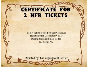 Certificate good for 2 tickets to the National Finals Rodeo in Las Vegas, NV. Tickets are for December 9, 2013 for Finals Rodeo at the Thomas and Mack Event Center.