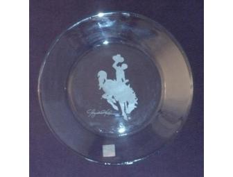 Clear plate etched with Wyoming bucking bronco signed by U.S. Representative Cynthia Lummis