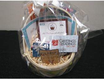 Donated by Flavor Cupcakery, Glarus Chocolatier, Greetings & Readings, Mom's Organic Market Gift Card, and Let’s Dish!