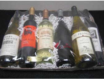 Six Bottles of Wine in a Wooden Box - three white, three red.