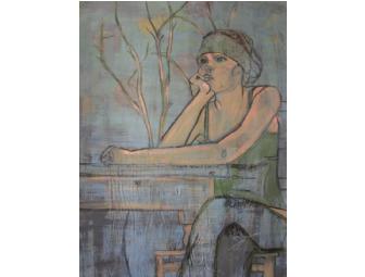 Original Mixed" Media Painting of a Seated girl.
