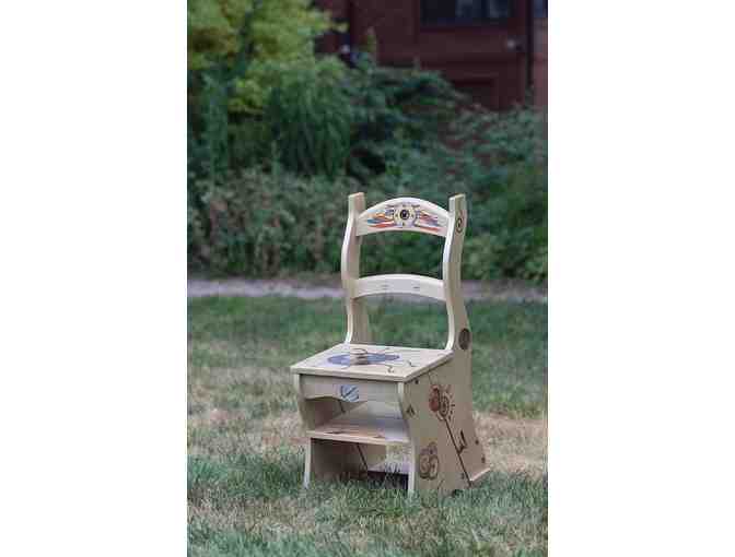 Not only is this a children’s chair… it also folds into a ladder! Your child would love this chair to sit on or climb. They can use it to reach for books, spy on something, or simply just to climb on! This ladder chair is for boys, girls, young and old-ish. The chair is made out of solid oak and has been painted with acrylic, latex, and clear varnish.