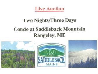 Where wilderness and recreation meet! Saddleback Mountain, Rangeley, ME condominium. Enjoy two nights and three days at a beautiful, fully equipped condominium. Sleeps six maximum: two bedrooms with queen-size beds and one bedroom with a day bed which can be made up as two twins. There are two bathrooms.