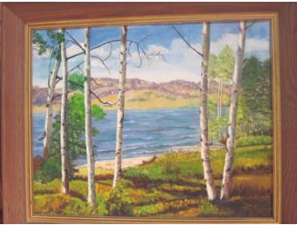 Birches By The Lake . . somewhere in northern Maine dear Ruth White set up her easel and painted this very peaceful scene by a lake. The oil painting will surely be a reminder of our beautiful state of Maine. This is a treasure for sure. Donated By: Estate of Ruth E. White, Parishioner, S. Mary's Church.