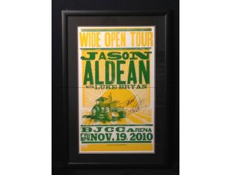 One of a kind Hatch Show print signed by Luke Bryan and Jason Aldean. Print is from their 2010 show at the Birmingham-Jefferson Convention Center.