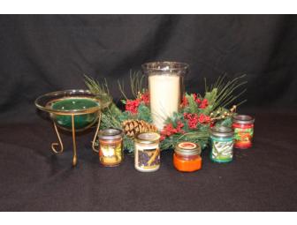 - four (4) 7.3 oz candles in jars with lids (grab and go hostess gift!): Winter Pine, Fireside, Holly Berry, and Cinnavanilla; and