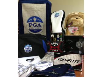 Home of the 2013 PGA Championship, Rochester, NY golf package includes: Chrome golf balls,Distance golf balls, one (1) dozen Callaway HX Diablo Tour golf balls, one (1) dog playing poker driver cover, one (1) official PGA Championship driver cover, PGA Championship commemorative ball markers and diviot set, bag of 100 tees, PGA Championship golf towel and PGA Championship duffle bag. Plus six (6) Bobby Jones golf shirts (available in small - 2x) made by Hickey Freeman of Rochester along with one of their great Navy Blue Blazers. Redemption certificate will provided to the winning bidder.