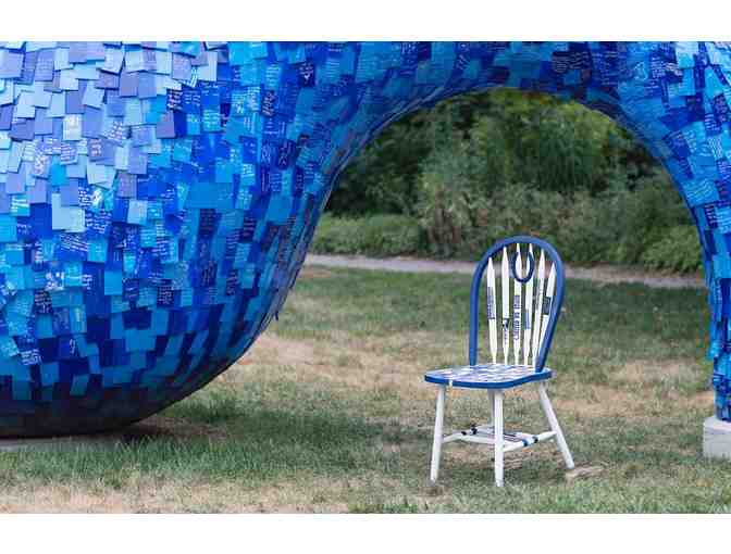 This Indianapolis Colts chair is one of a kind! The seat of the chair has been covered in recycled Colts tickets from previous games. It includes an Autographed Jersey by Indianapolis Colts Reciever Reggie Wayne, and other Colts Gear!