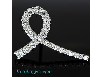 This extraordinary Victory pin, designed and crafted in honor of Leslie Von Bargen, is made from 23 Ideal Cut Diamonds set in platinum. Diamonds are G in color and VS2 in clarity and weigh approximately 0.58 carats. Proceeds from this particular item only will go to support the oncology clinic at Springfield Hospital.