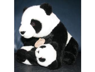 Soft and adorable plush panda mom cuddling with her cub. Hand crafted from Classic Aurora