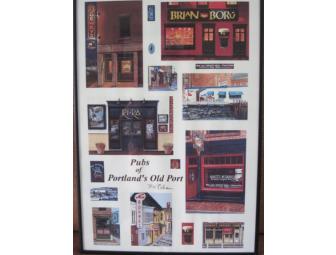 Pubs of Portland . . . This is a Giclee print of the Pubs in the Old Port by artist R.N. Cohen. Cohen is a Maine artist and loves capturing scenes of his beautiful homeland. All his oils, watercolors and giclee prints are available at his studio-Gallery in Portland located at the State Theater Building in the arts district. Have a pint on me! Donated By: Jim Stoddard