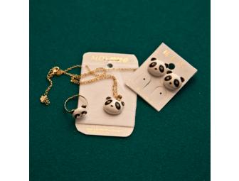 Panda Necklace, Ring, and Earring Set