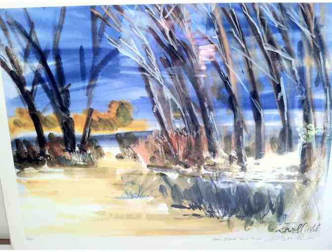 “Amico Island” . . . a diverse peninsula (not really an island) with upland forests, freshwater ponds and wetlands, river shoreline and meadows, a great place for hikers and birders, located along the Delaware River. Artist Erin McGee Ferrell created a watercolor En Plein Air. This is a beautiful Giclee print based on the original watercolor. Donated by Erin McGee Ferrell