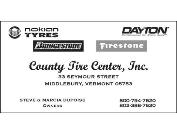 A $35 gift certificate towards products and/or services at County Tire Center.