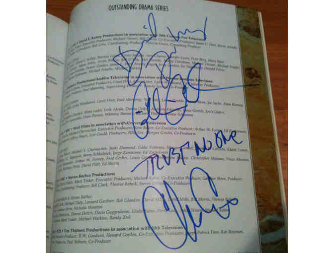 You won't be able to put down this thick, glossy program from the 1996 Primetime Emmy Awards, full of photos, interviews and information on the nominees. And speaking of nominees, did I mention it's signed by nominees -- and X-FILES stars -- David Duchovny and Gillian Anderson, as well as creator Chris Carter?