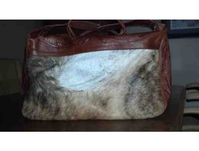 Brown Premier With Hide Dyed Brown Floral Tooled leather luggage bag- 21” Long X 13” High x 13” wide