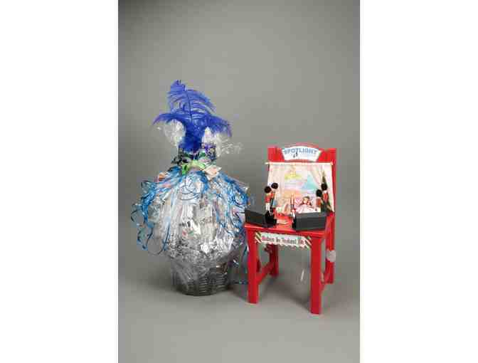 - Theatre themed basket containing wine, glasses, chocolates