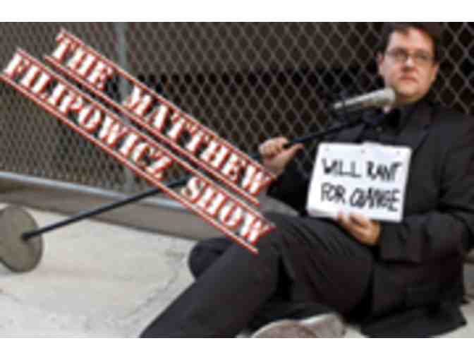 This is an opportunity to appear as a featured guest on the Matthew Filipowicz Show. It's the very same show that Alan Grayson, Markos Moulitsas, Jeremy Scahill, Dahlia Lithwick, John Nichols, Anne Elizabeth Moore, Cenk Uygur, Joan McCarter, Mike Papantonio, Darcy Burner and many, many more have appeared on.