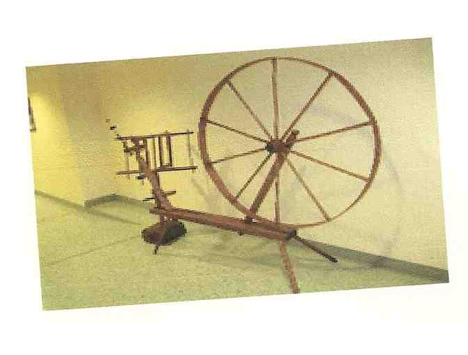 Classic Antique Spinning Wheel The 'Great Wheel' is estimated to be over 125 years old. The 'Great Wheel' was one of the earlier types of spinning wheel and is also known as a 'Walking Wheel' because the spinner operates while standing. The 'Great Wheel' played an important role in the production of wool spinning for many, many years and is distinguished by its large wheel, typically over five feet high. Using a 'Great Wheel' or 'Walking Wheel' is an art form requiring deftness and skill. However, the 'Great Wheel' is generating new interest from handspinners. Go ahead and try your 'hand' spinning. There are many websites out there to get you started. This 'Great Wheel' needs some repair work, but basically in very good condition. Or maybe you're just a collector of fine antiques. Donated by: Carla & Art Birt.